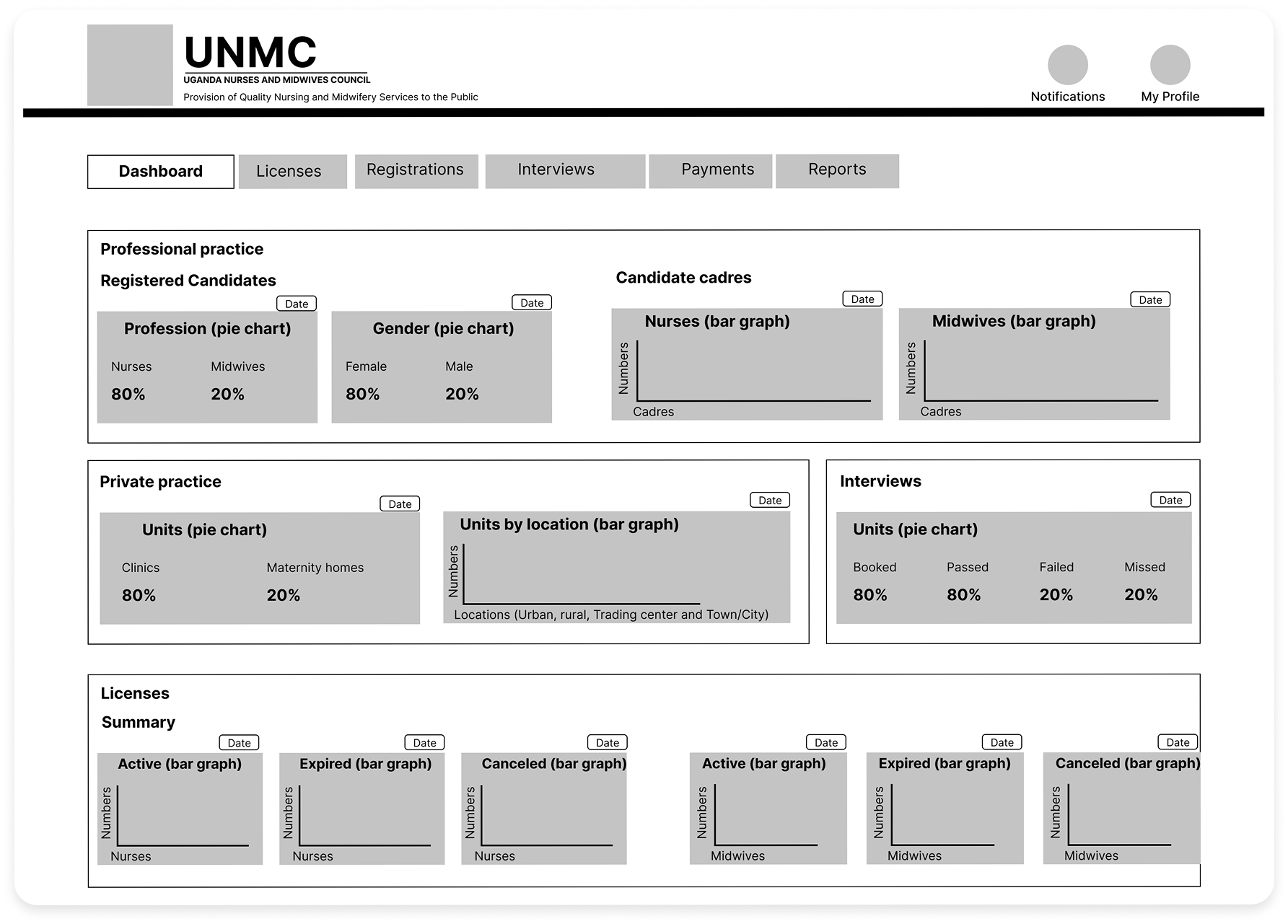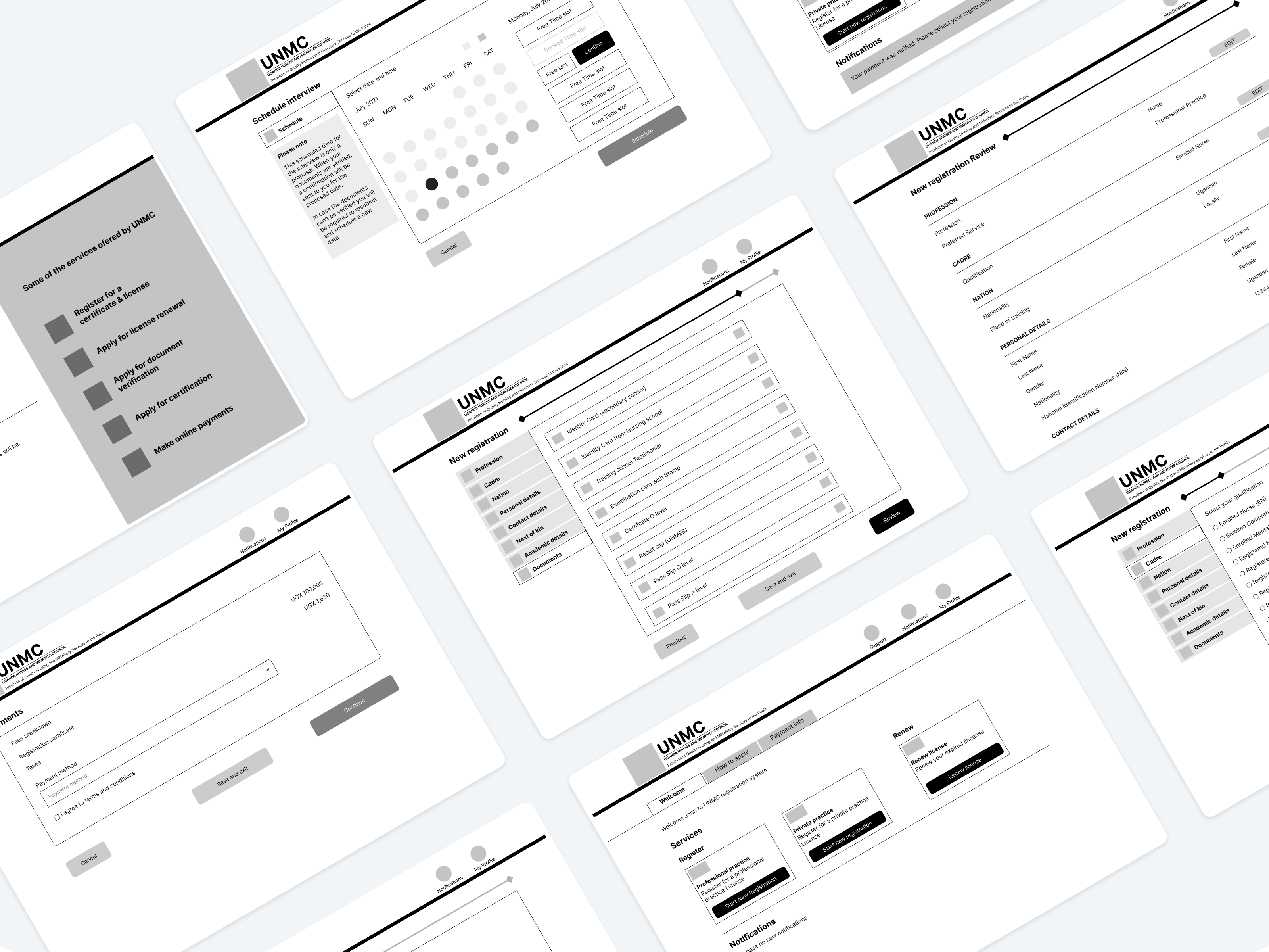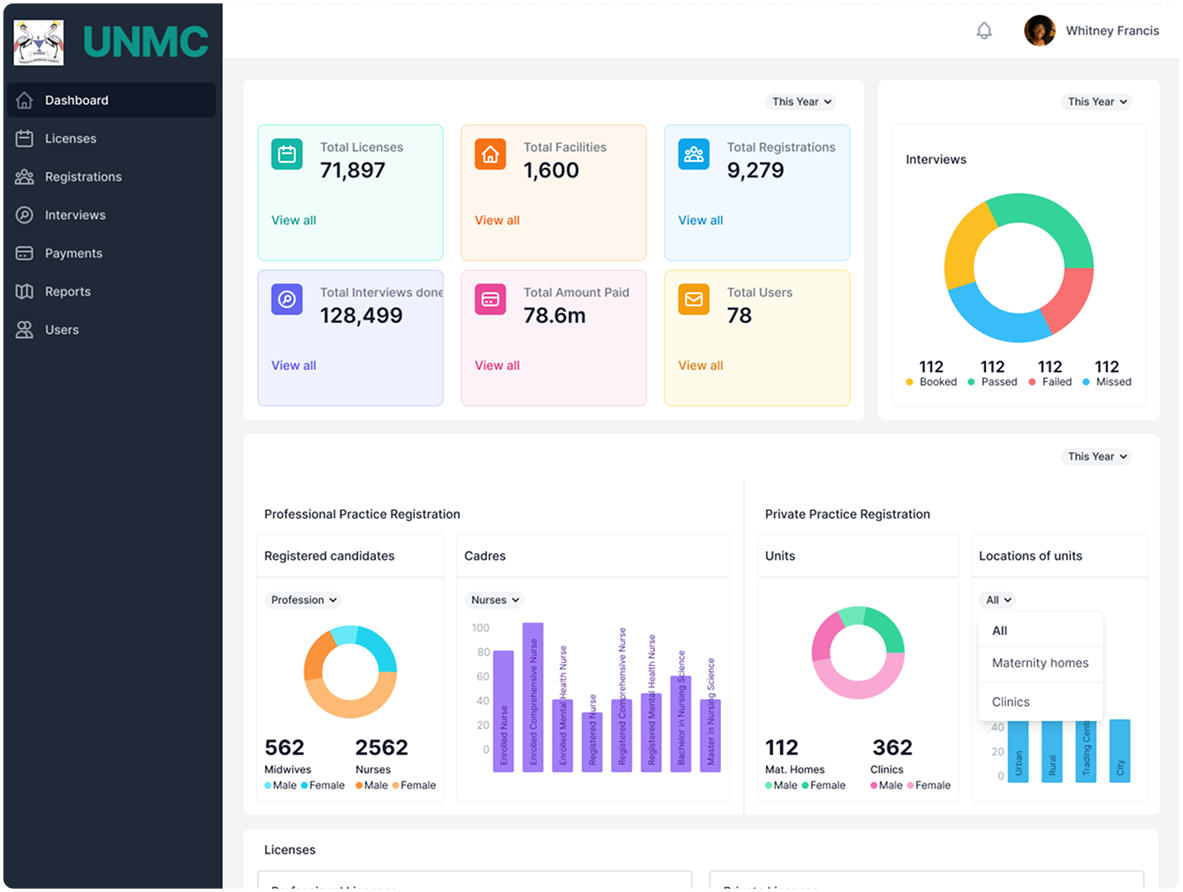 During the COVID-19 pandemic, UNMC encountered significant challenges with its conventional manual licensing process due to lockdown restrictions. The necessity for reduced physical interactions prompted the development of an online system. Additionally, there was a surge in demand for health services at that time. To address these challenges, it became essential to establish an online registration, interviewing, and licensing platform integrated into the council’s website, along with a companion administration portal to enhance the council’s visibility, facilitate interaction, and ensure accountability.