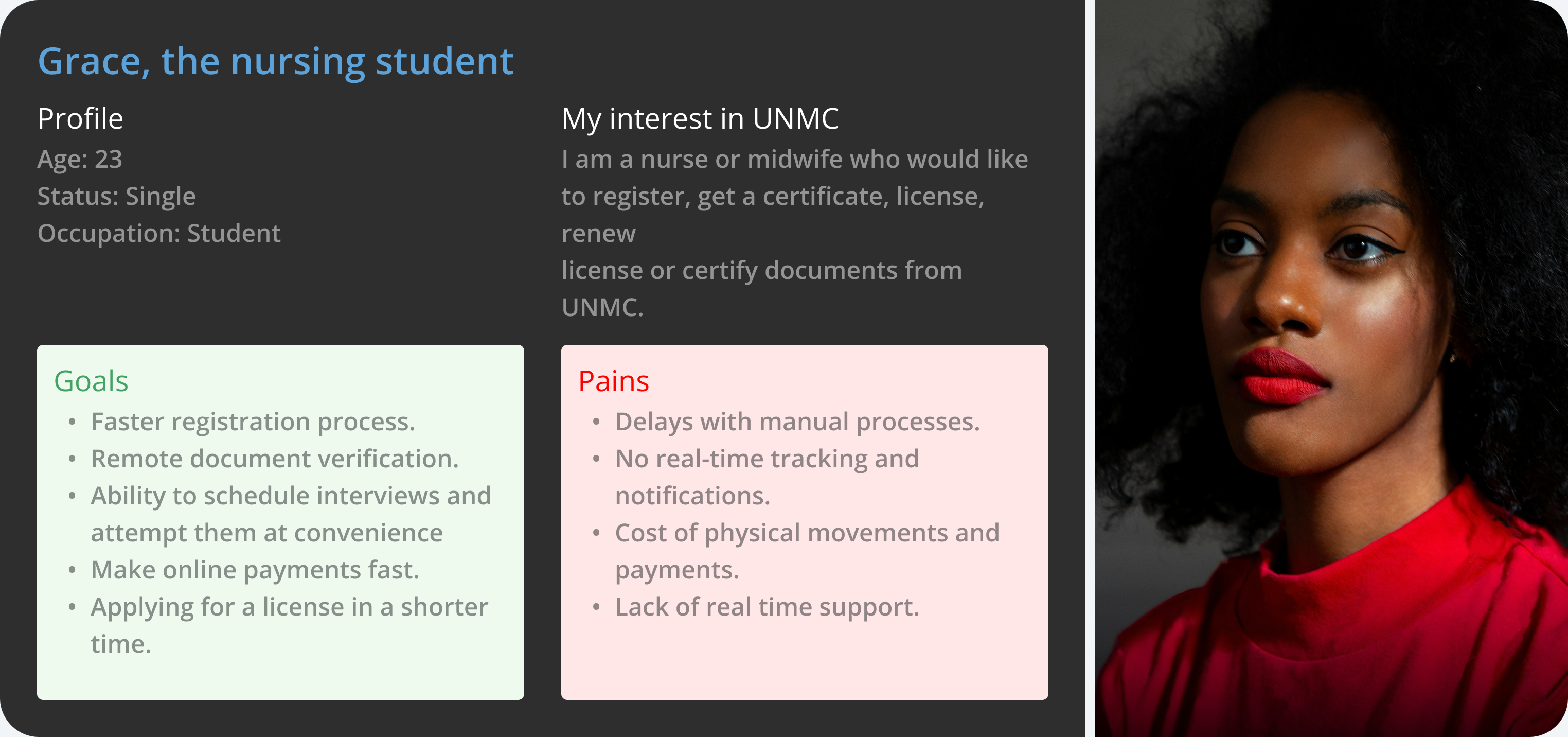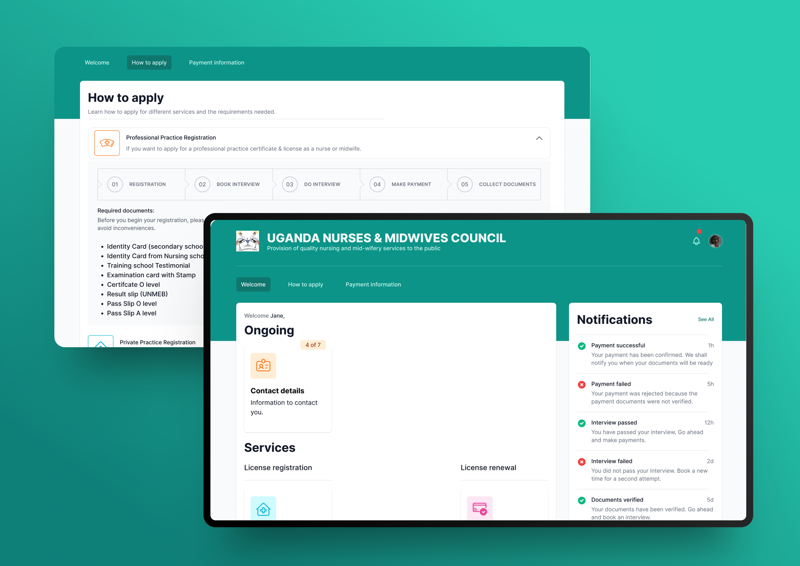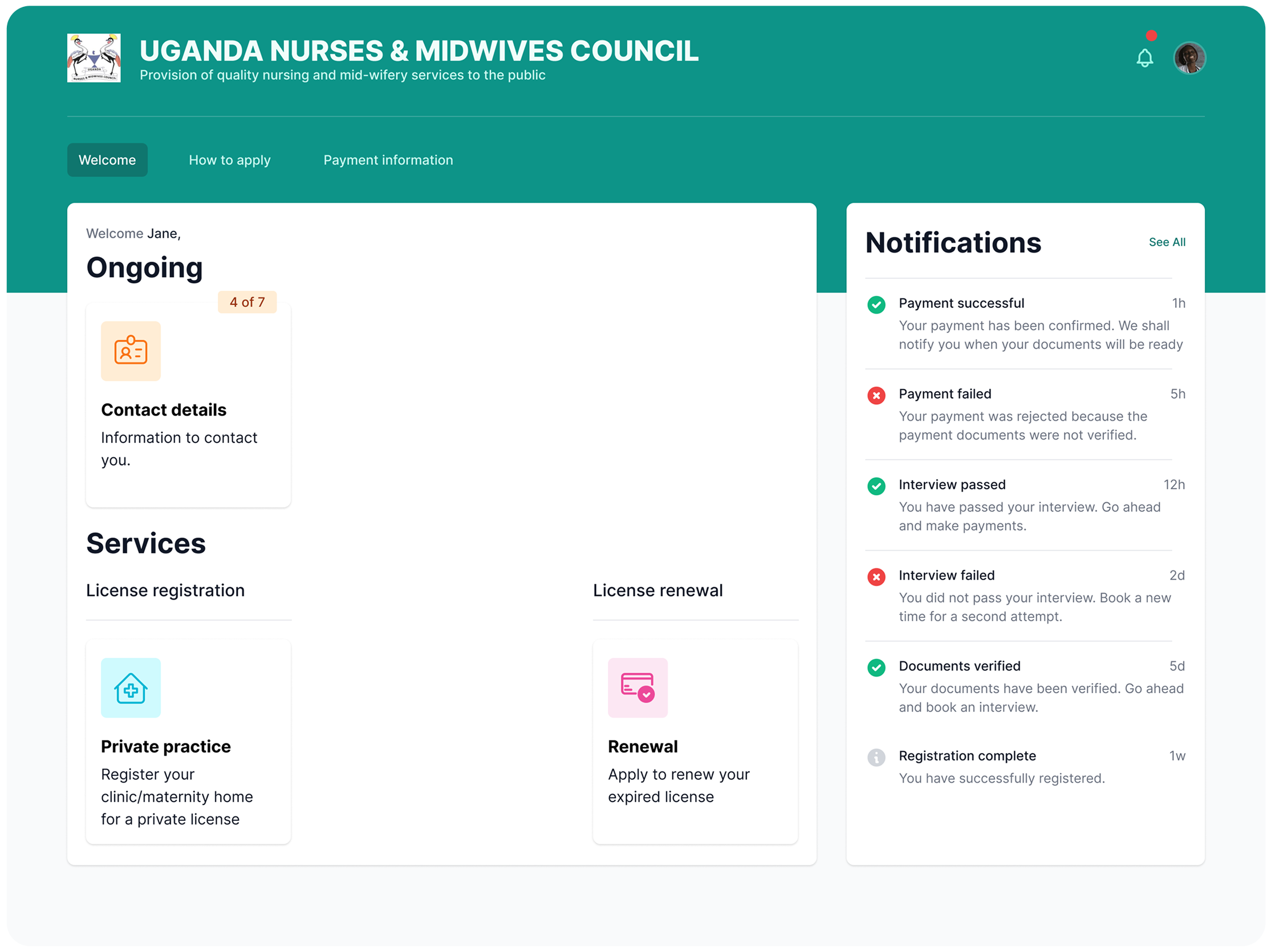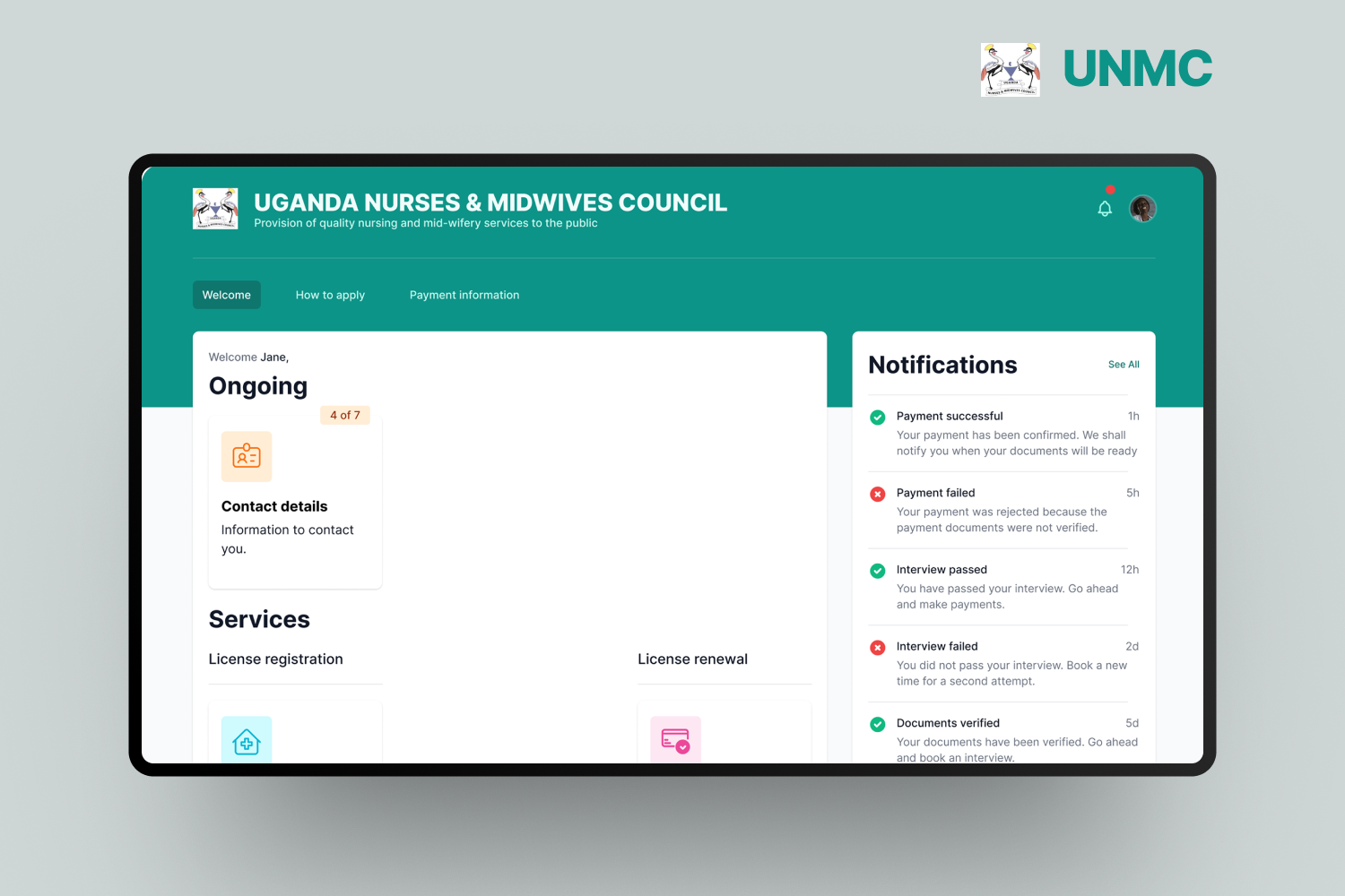 With the COVID pandemic lock down restrictions in place, UNMC faced challenges in their traditional manual licensing process. Limited physical interactions necessitated the creation of an online system. Moreover, there was an increased demand for health services at the time.There was a need to create an online registration, interviewing and licensing platform integrated in the council’s website plus a companion administration portal for the council’s visibility, interaction and accountability.