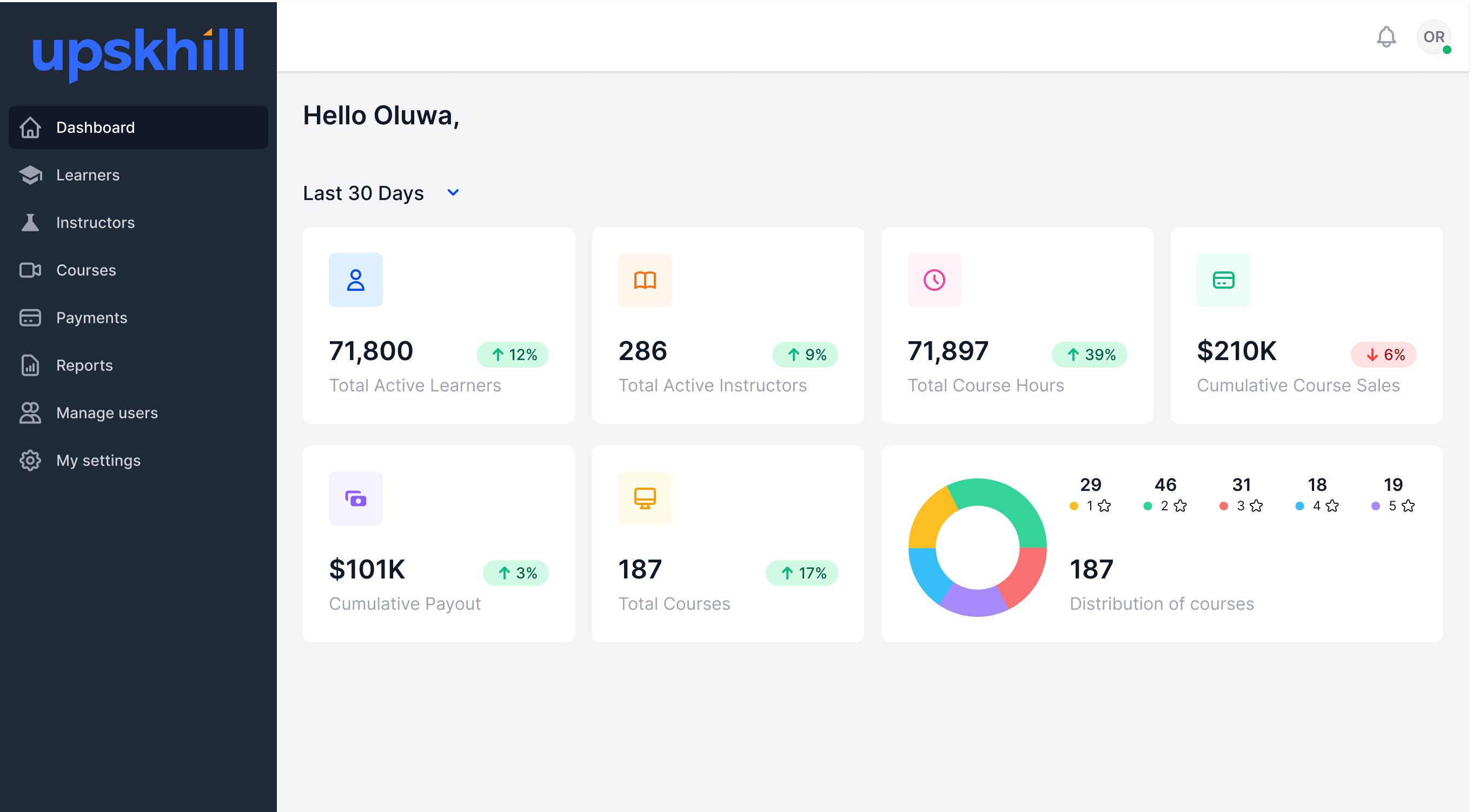 This module provides a comprehensive overview of the administrator's role within the upskhill platform. It covers various sections including students and instructor management, internal user management, course creation, analytics reporting, communication tools, finances all designed to enhance the overall learning experience and streamline administrative tasks.