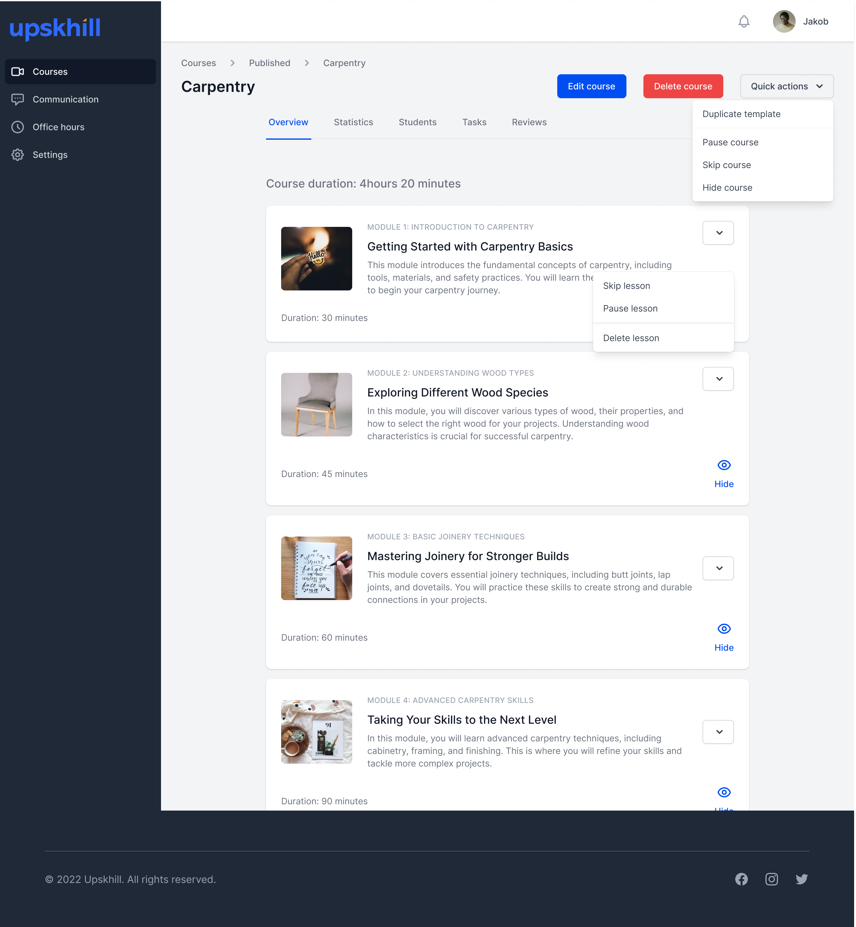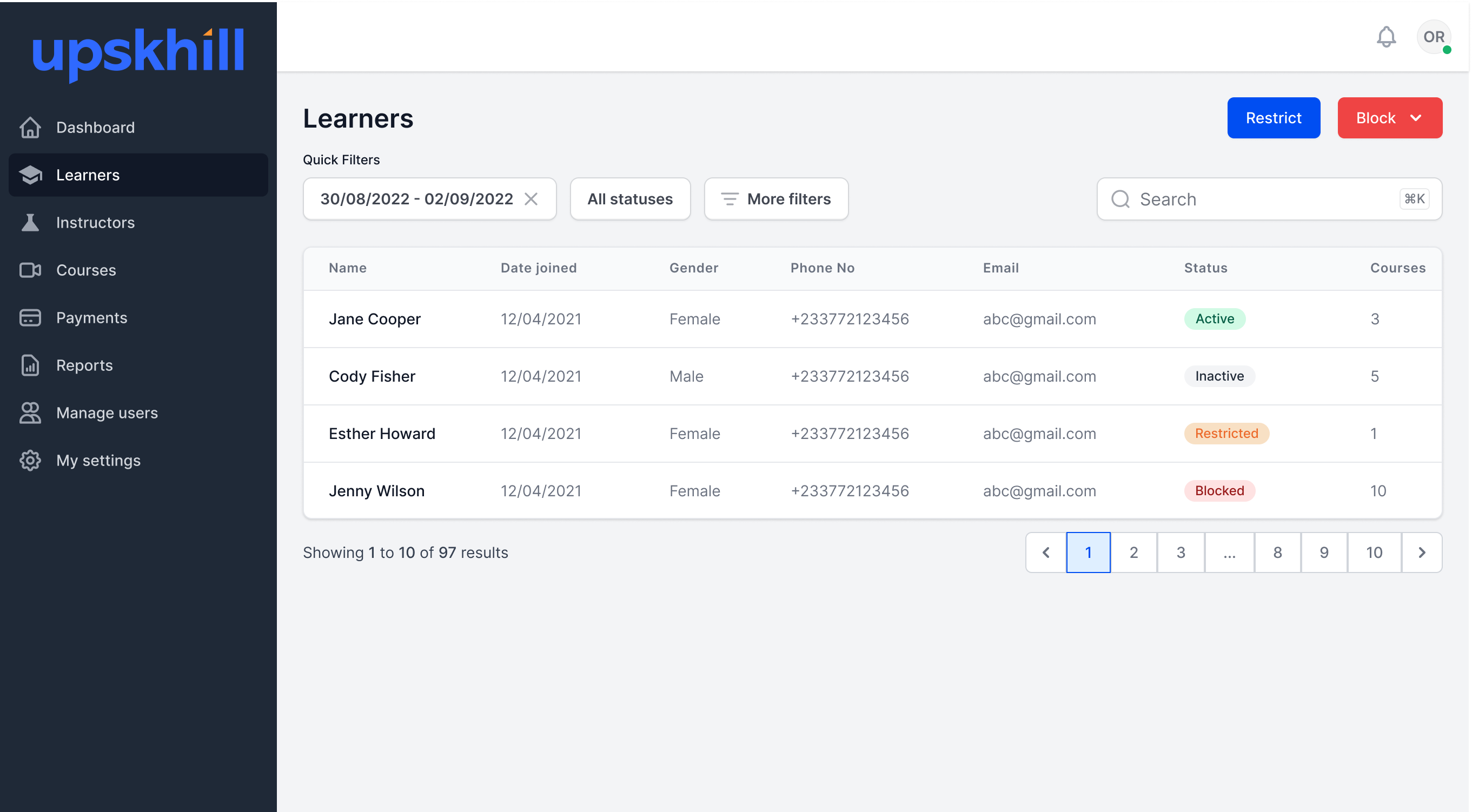 This module provides a comprehensive overview of the administrator's role within the Upskhill platform. It covers various sections including students and instructor management, internal user management, course creation, analytics reporting, communication tools, finances all designed to enhance the overall learning experience and streamline administrative tasks.